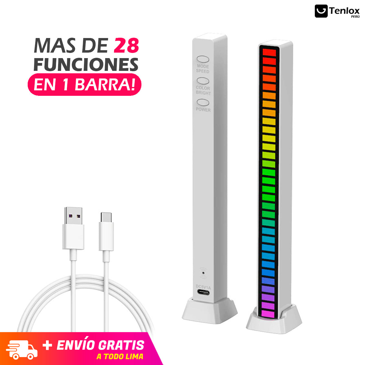 ✅ Tendrás MAS DE 28 FUNCIONES EN 1 SOLA BARRA, podrás personalizar muchos estilos de colores led y diferentes tipos de ritmo de sonido.